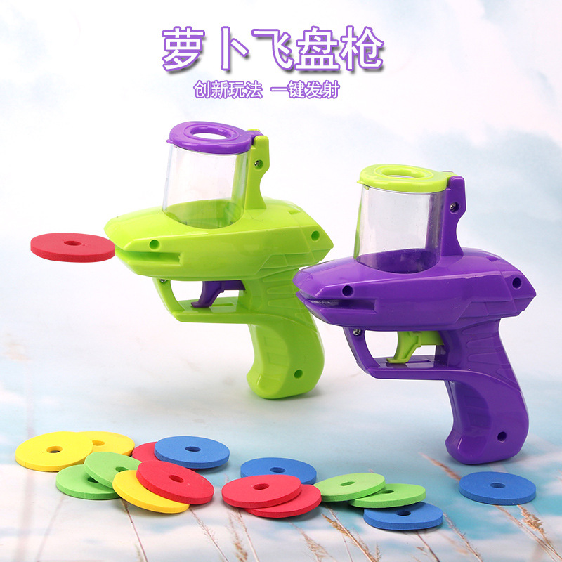 ダイコンの飛盤の銃の子供の漫画の飛盤の銃の室内の親子はインタラクティブに回転して飛盤の益智のおもちゃを発射して卸売りします。