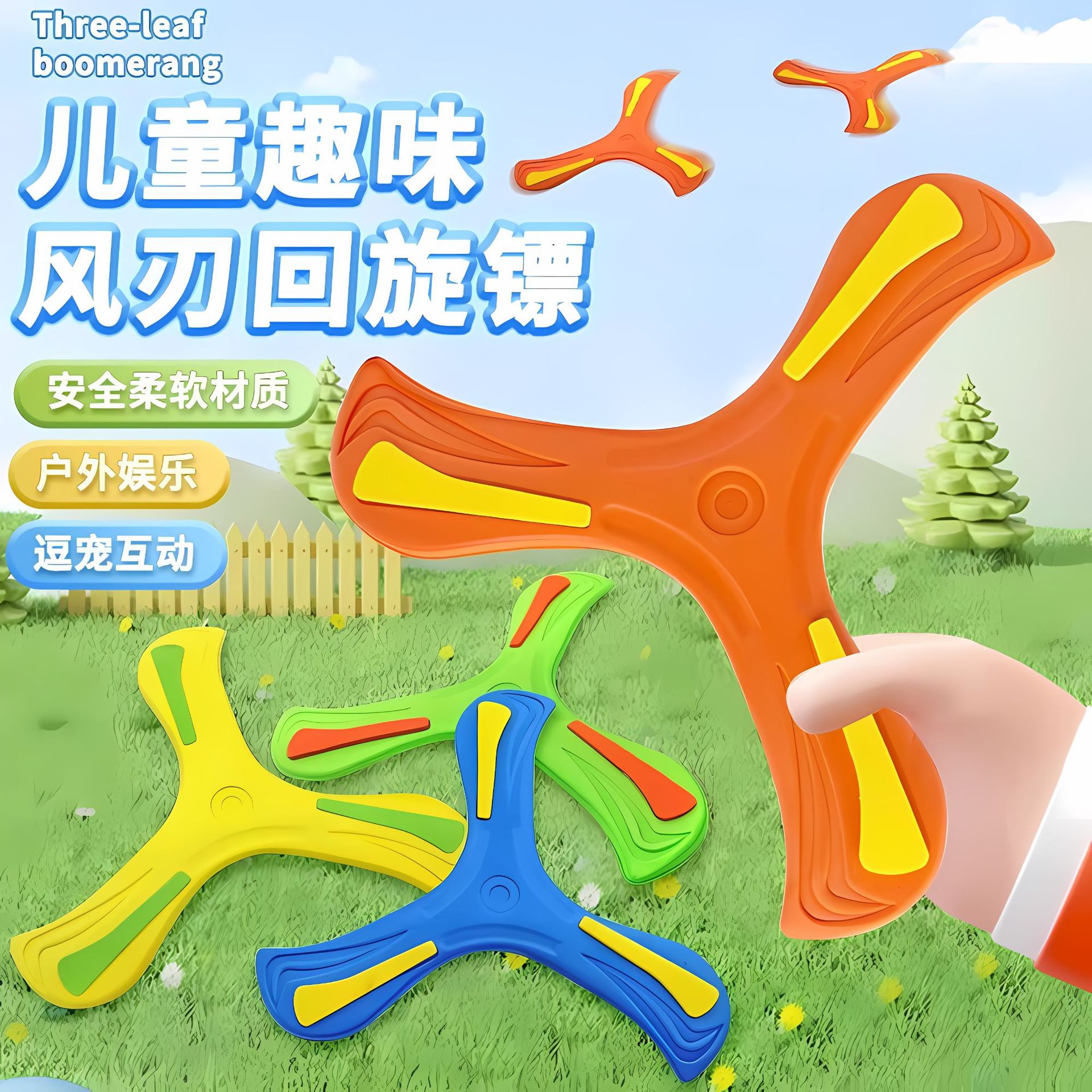 子供用ブーメラン大型おもちゃは飛んで帰っても壊れない、ソフトフリスビーおもちゃ、ソフトプラスチック三枚羽根のインタラクティブな手投げ