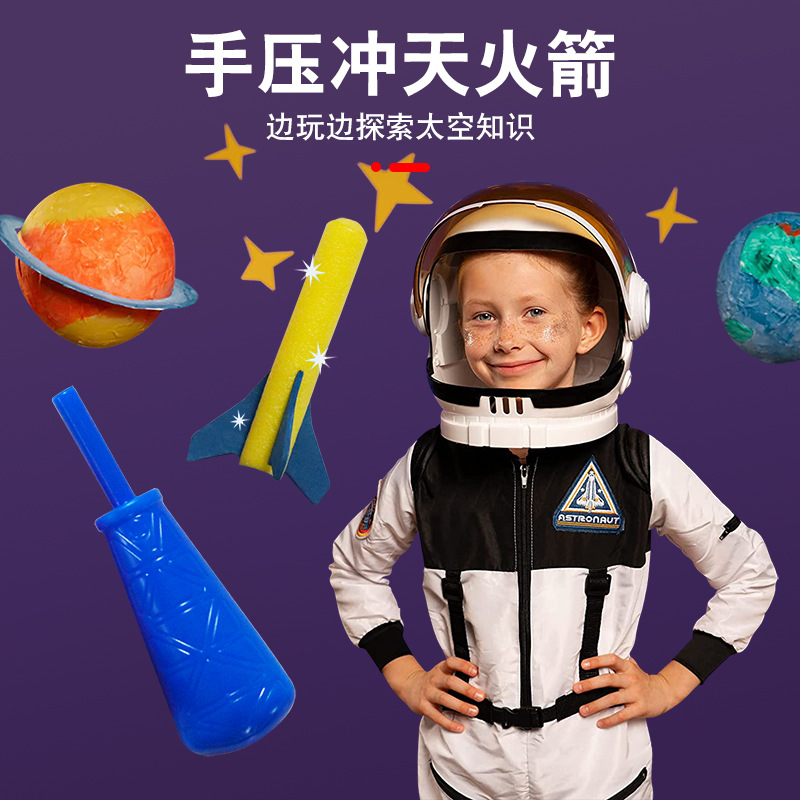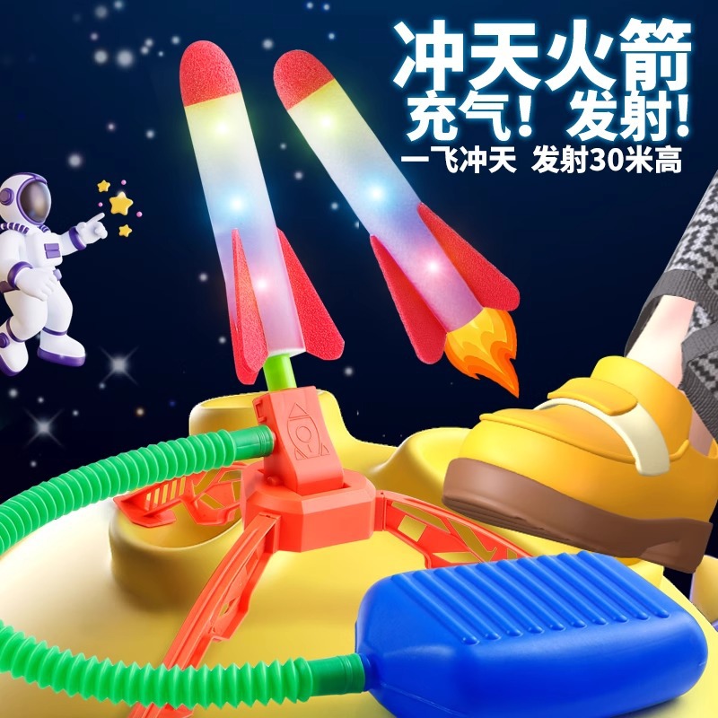 F子供の足は天を突くロケットを踏んで空を飛びます。