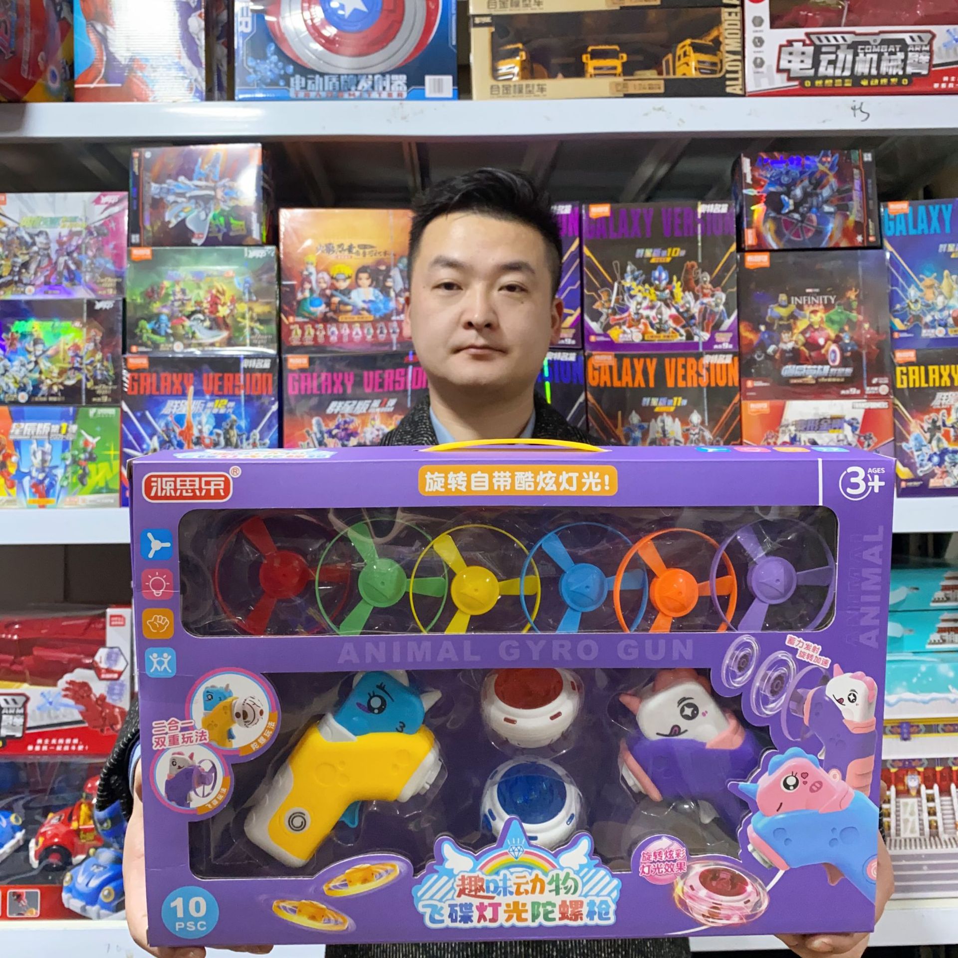 子供の空飛ぶ円盤ジャイロガン屋外インタラクティブ照明発射銃玩具屋外活動のお土産卸売り