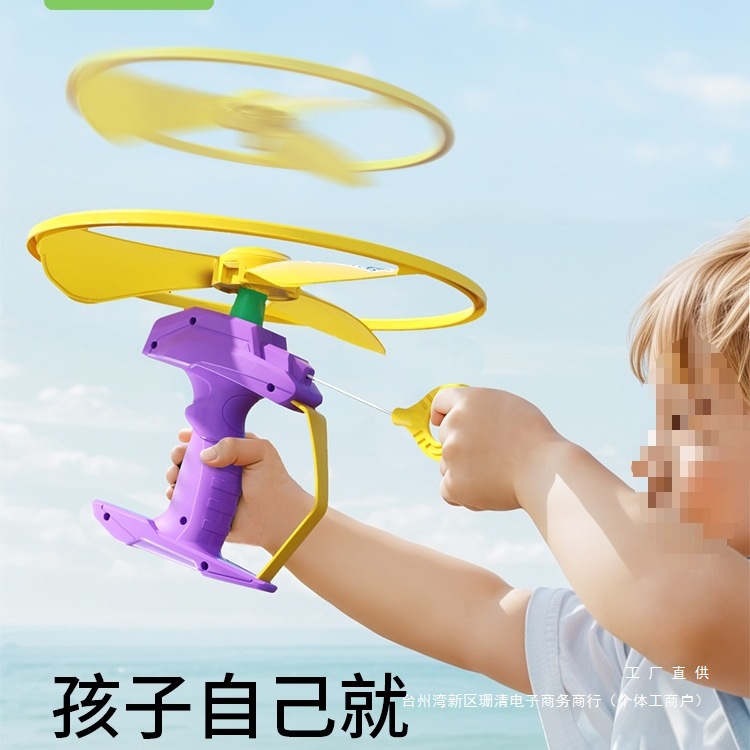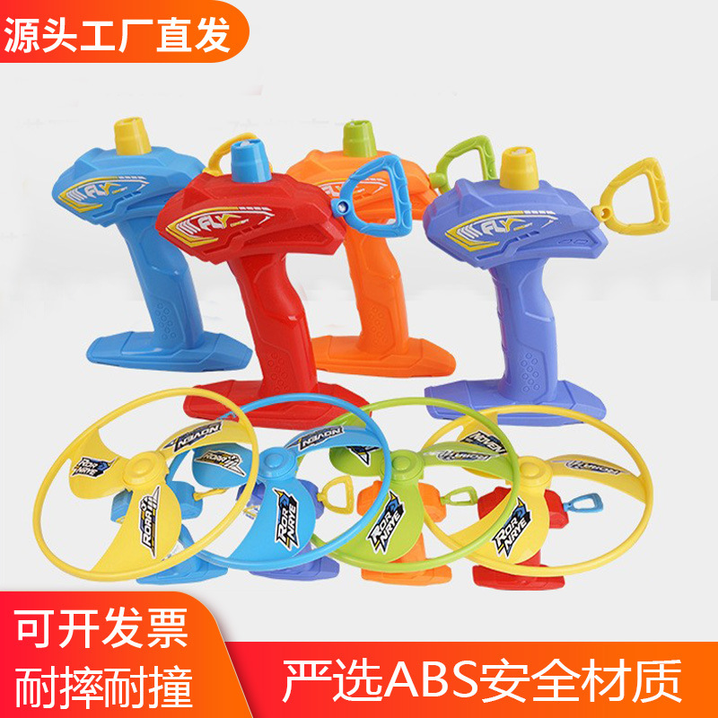 子供の竹トンボのおもちゃ手引き空飛ぶ円盤ハンドヘルド弾丸発射銃回転空飛ぶ子供の屋外おもちゃ