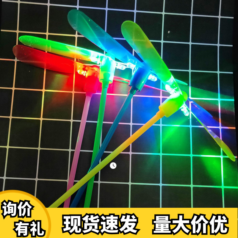 光る竹のトンボが回転して空を飛ぶおもちゃ、子供用屋外公園の屋台のおもちゃ
