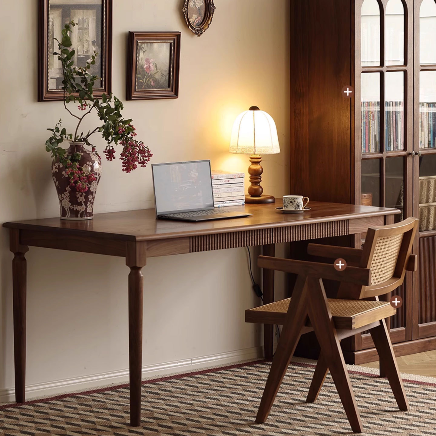 北米産ブラックウォールナット無垢材デスク、引き出し付きシンプルなホームベッドルーム、小さなアパートの書斎、ライティングデスク