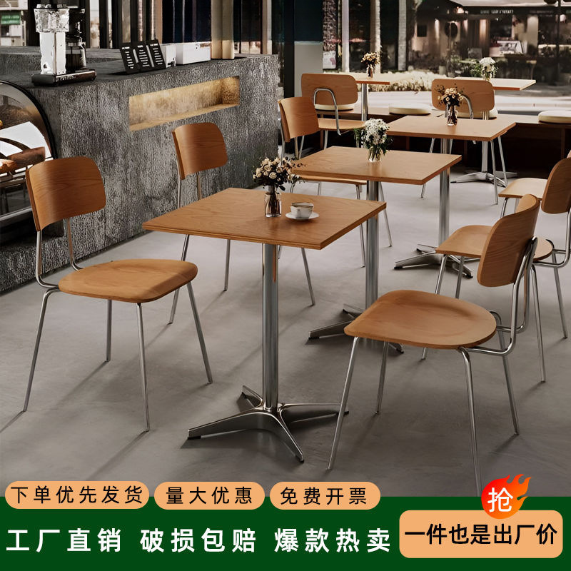 レトロスタイルカフェオーシャンボードテーブルと椅子の組み合わせミルクティーベーキングデザートショップシンプルな正方形テーブル商業無垢材ダイニングテーブル