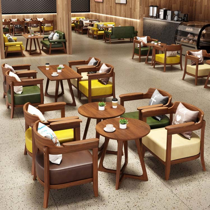 レトロなカフェ商談シンプルなレジャーレセプションエリアブックバーレストランデザートミルクティーショップ無垢材ソファと椅子の組み合わせ