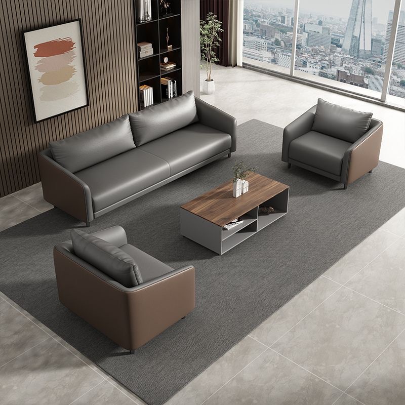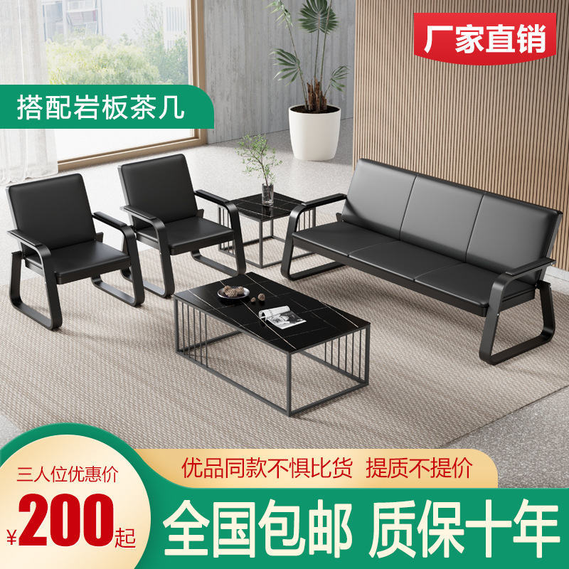オフィスソファシンプルモダンビジネスレセプションレジャー3人掛けコーヒーテーブル組み合わせセットレザーアート卸売