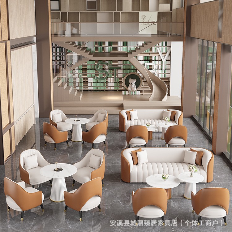 ホテルロビービジネスレセプションストレートローソファコーヒーテーブルコンビネーションライト高級レジャーレセプションオフィス展示ホールソファチェア