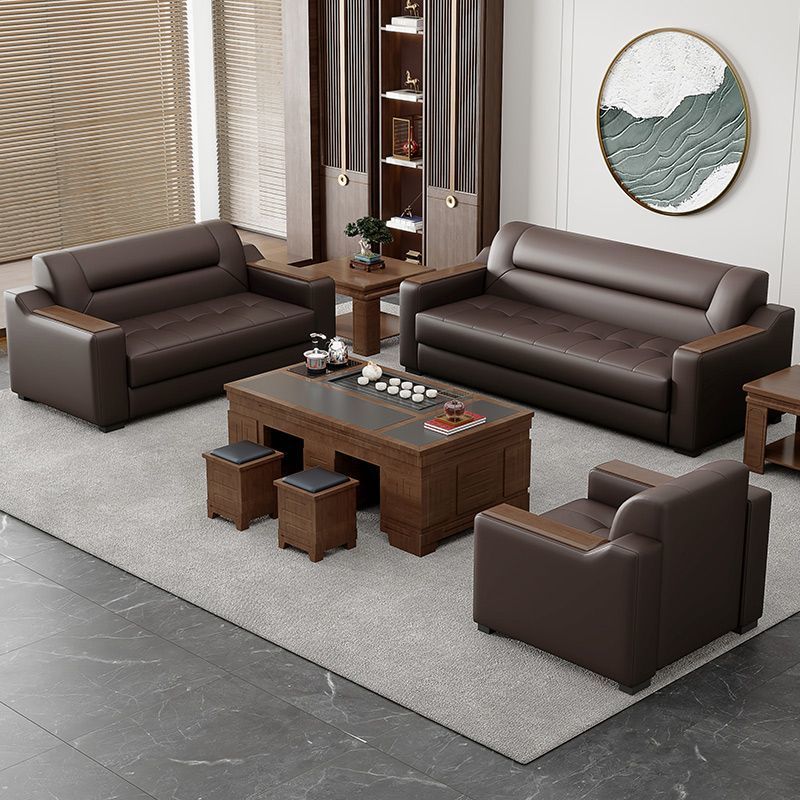 オフィスソファー現代接客ビジネス接待商談レジャー区現代真皮ソファー茶卓セット