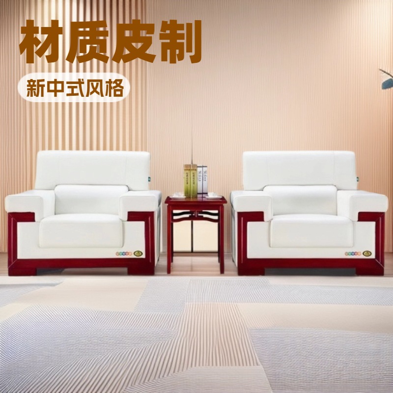 会議ソファオフィスリビングルームVIPレセプションビジネスモダンシンプルシングルレザーソファコーヒーテーブル組み合わせ