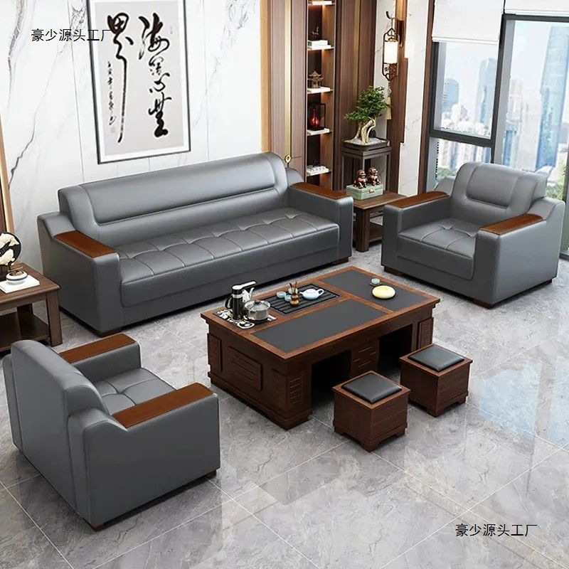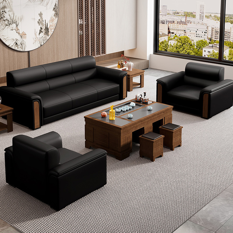 オフィスソファストアシンプルな中国風のビジネスリビングルームホテルホール受付レザーオフィスコーヒーテーブル
