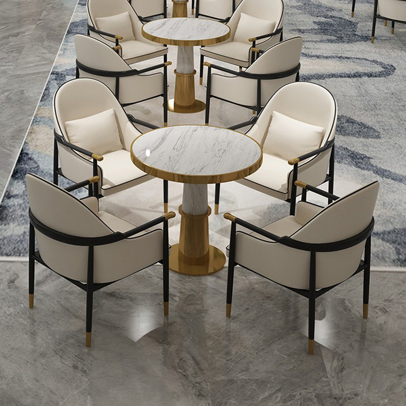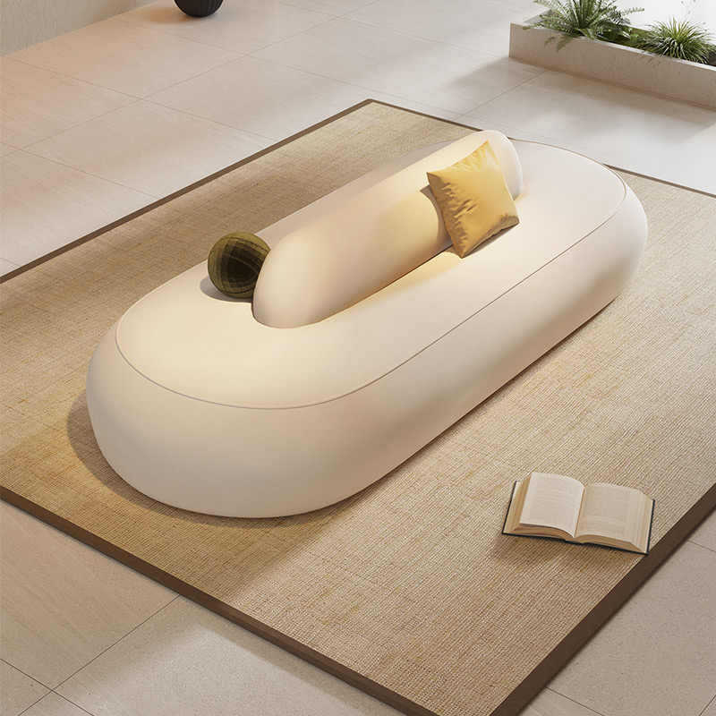 ミニマリストホテルロビーホールVIPクラブ休憩エリア受付販売商談判リビングルーム曲面レザーソファ