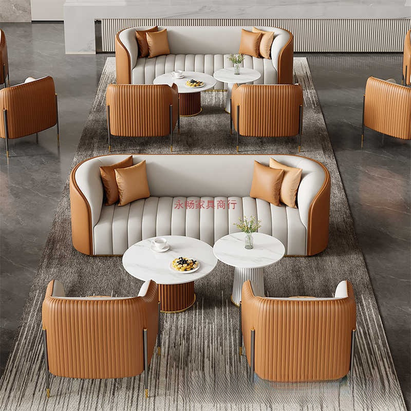 ビジネスレセプションソファコーヒーテーブル組み合わせホテルロビーライトラグジュアリーレジャーライトラグジュアリーホテルリラクゼーションエリア商談テーブルと椅子アイアン