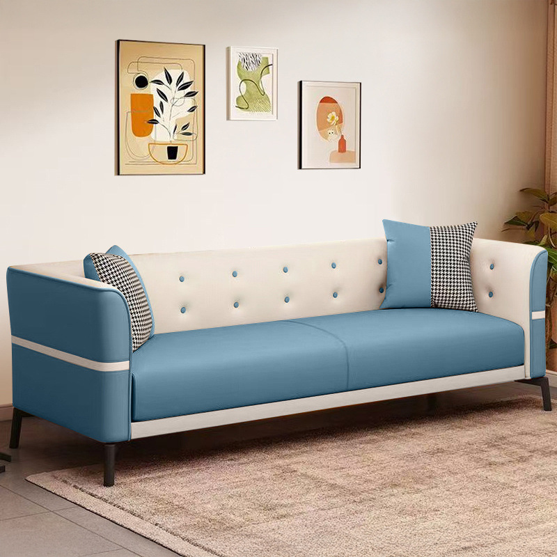 ビッグブラックカウソファイタリアンシンプルモダンリビングルームレザー豆腐ブロックストレートラテックスレストソファアパートレンタル
