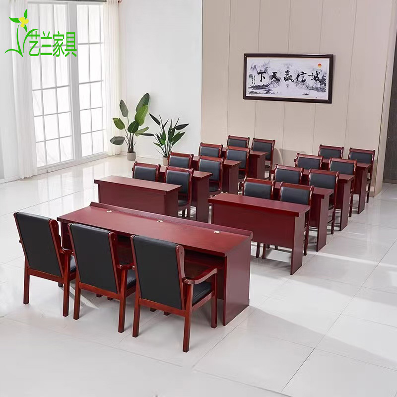 2人用会議テーブルと椅子の組み合わせペイント会議室ストリップテーブル無垢材レザーロングテーブルトレーニングストリップテーブルの組み合わせ