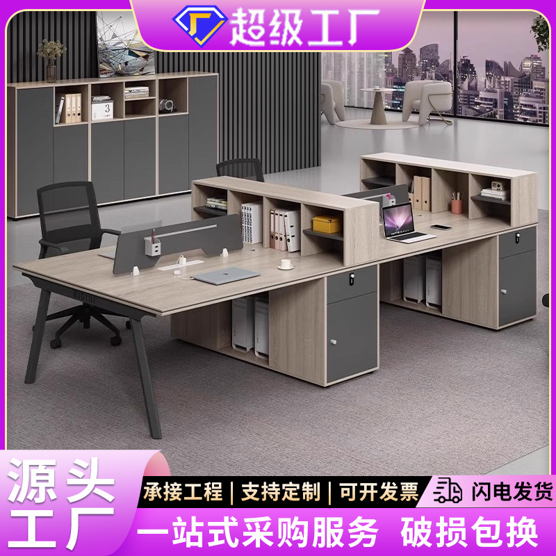 職員机屏風シンプル従業員4人位コンピュータオフィステーブルと椅子の組み合わせ家具カードの位置