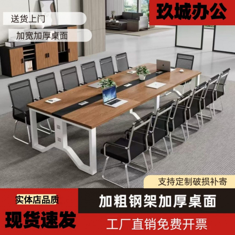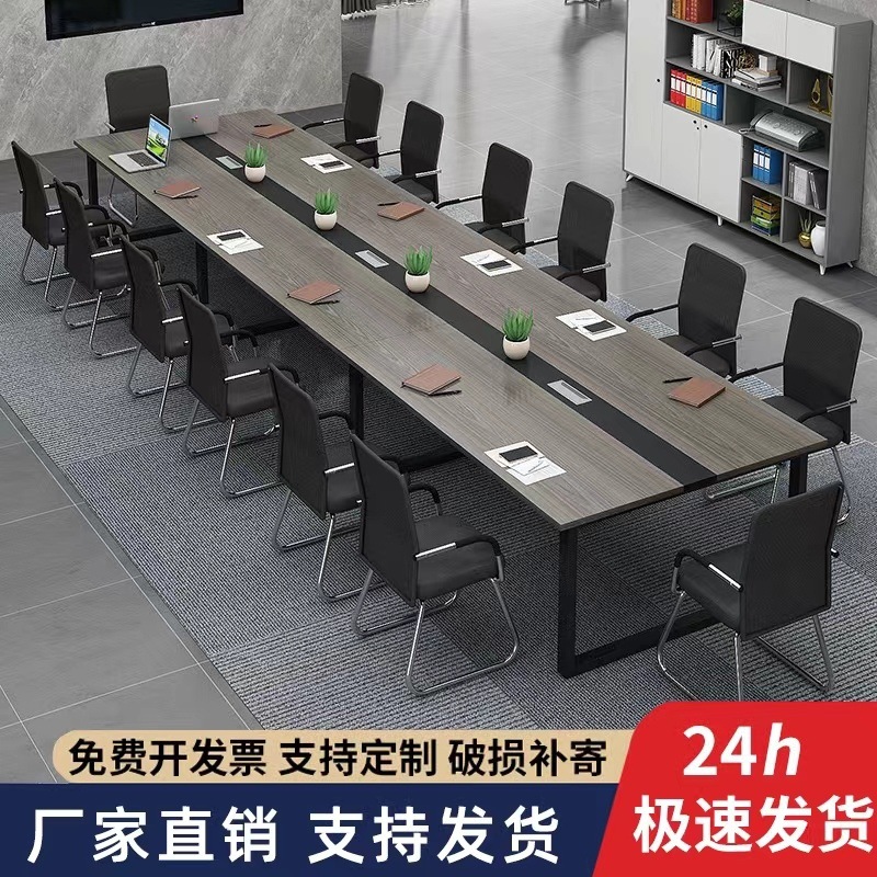 現代のシンプルな木製デスクの会社員のデスクトップコンピュータデスクの大型会議は長いテーブルと椅子の組み合わせを交渉します。