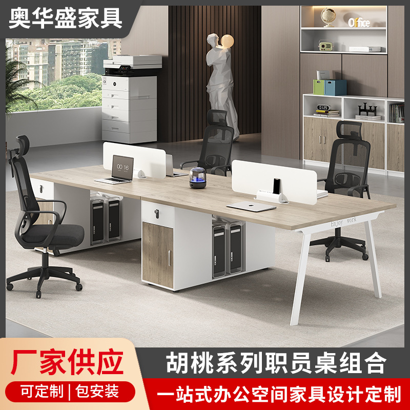 デスク4人位シンプルでおしゃれなオフィス家具6人の従業員カード席のテーブルと椅子の組み合わせパソコンデスク