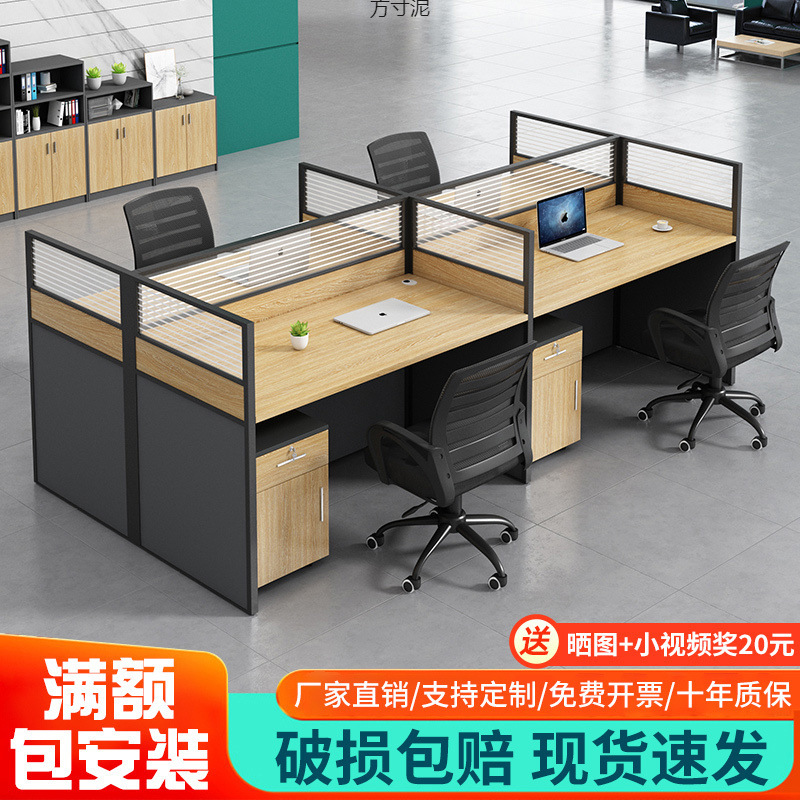 職員机屏風シンプル従業員4人位コンピュータオフィステーブルと椅子の組み合わせ家具カードの位置