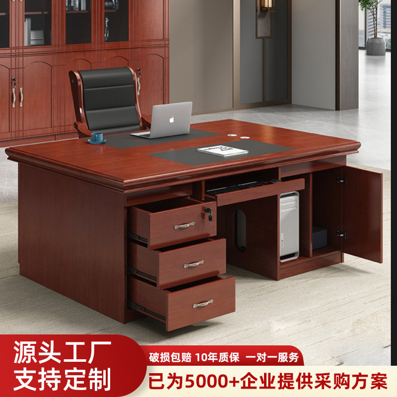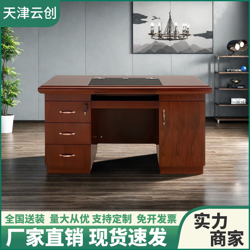 キーボードトレイ付きの新しい中国風デスク、木製突板塗装仕上げ、一人用スタッフデスク、リーダーオフィスデスク、コンピューターデスク