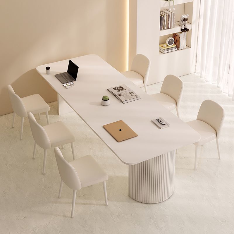 現代のシンプルな木製デスク会議室職員デスクトップコンピュータデスクオフィスの多くの人がテーブルと椅子の組み合わせを交渉しています