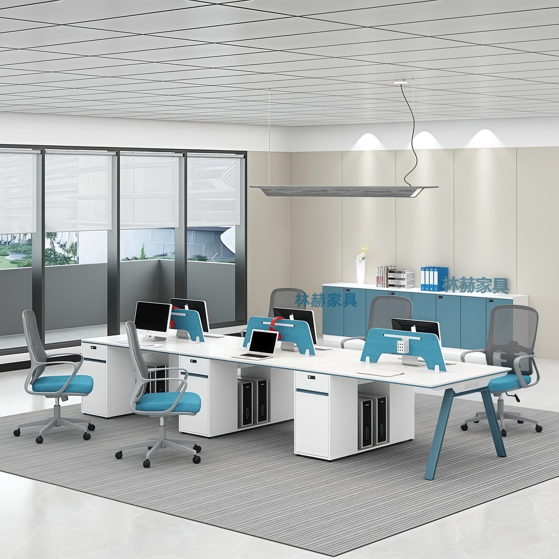 Q * l南昌オフィス家具シンプル社員オフィステーブルと椅子の組み合わせ4人の従業員6人のオフィス屏風