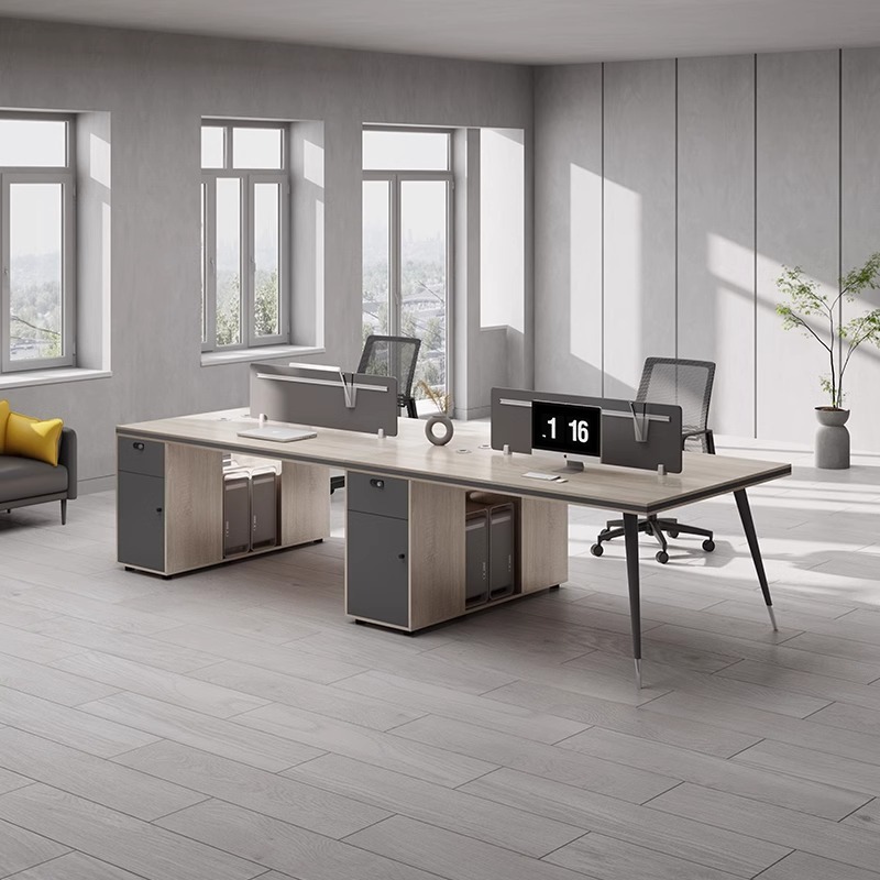 スタッフデスク4人オフィスオフィス家具スタッフ現代ファッションオフィステーブルと椅子の組み合わせ