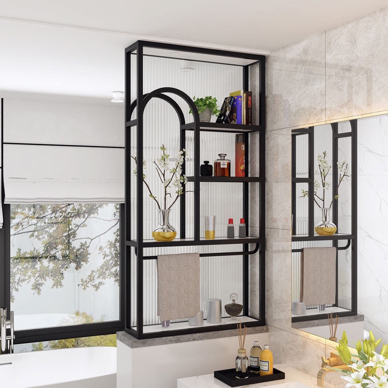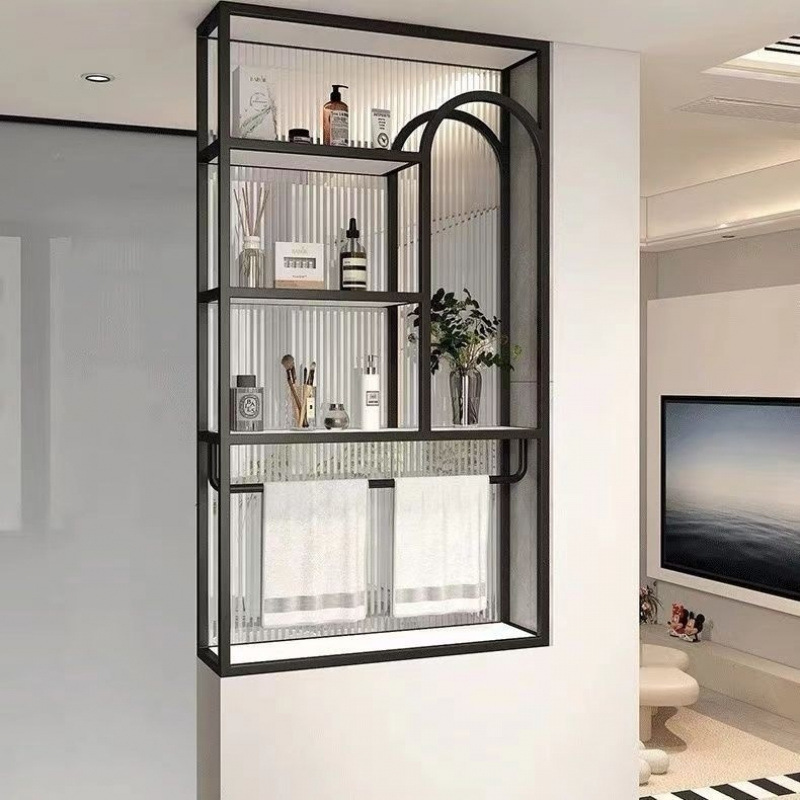 バスルームハーフウォールパーティションスクリーンキャビネットリビングルーム長虹ガラス金属ライト高級洗面台収納アイアンカスタムメイド