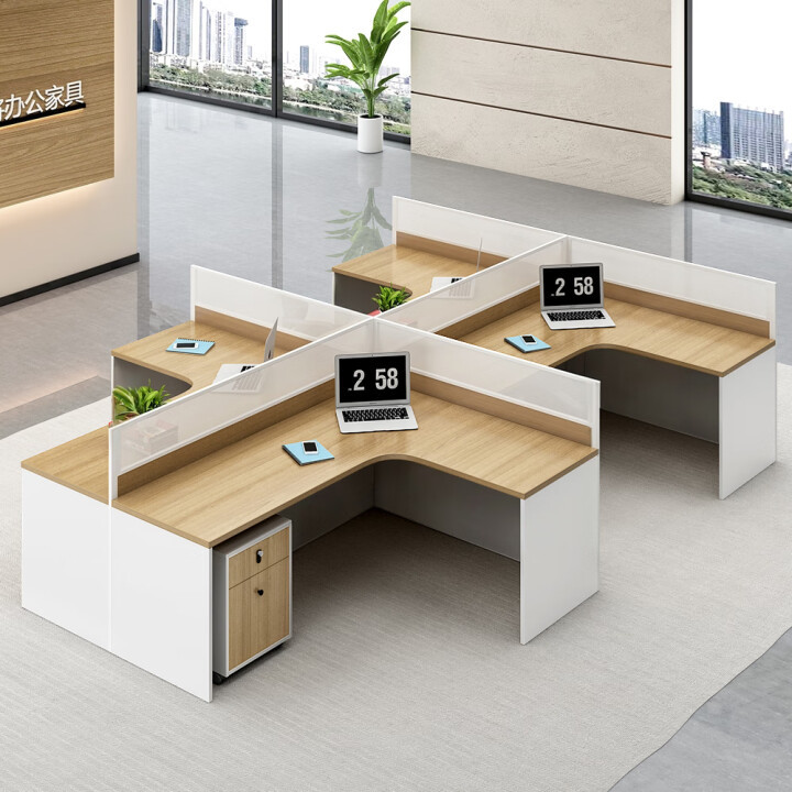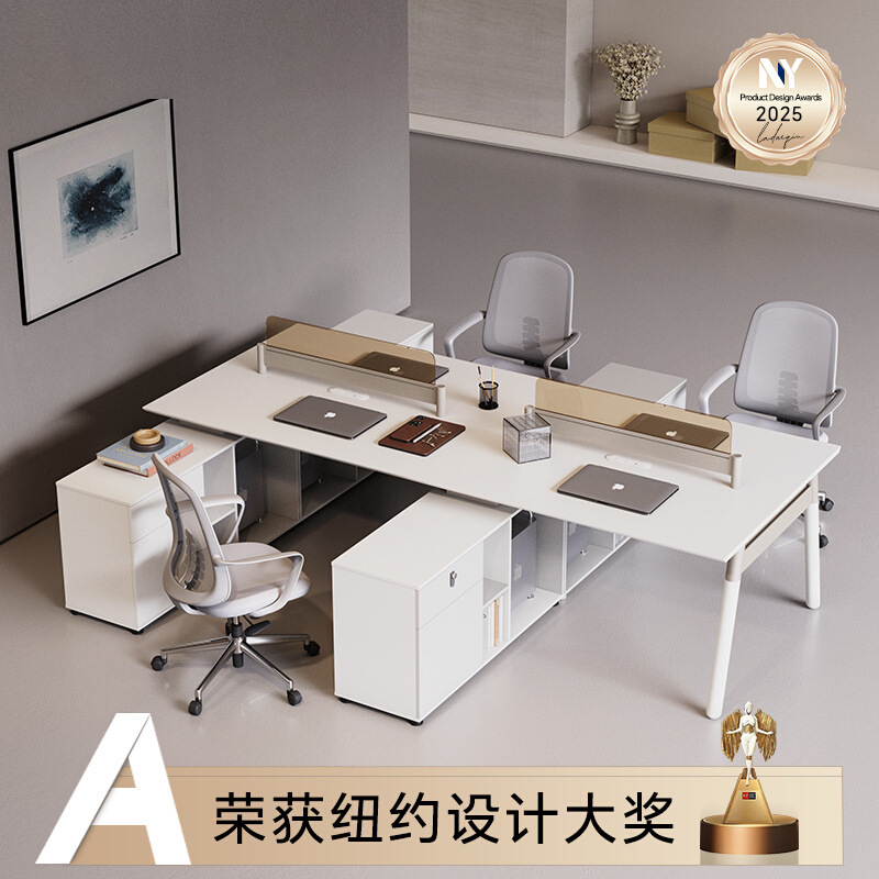 オフィスデスク スタッフデスク モダン シンプル ホワイト 会計 2人用または4人用 サイドキャビネット付き デザイナー