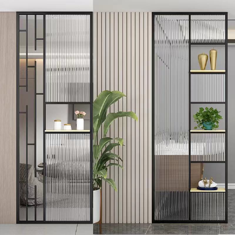 ライト高級新ガラス長虹スクリーン新中国風玄関シンプルなリビングルーム玄関キャビネットパーティションブロック装飾鉄アート