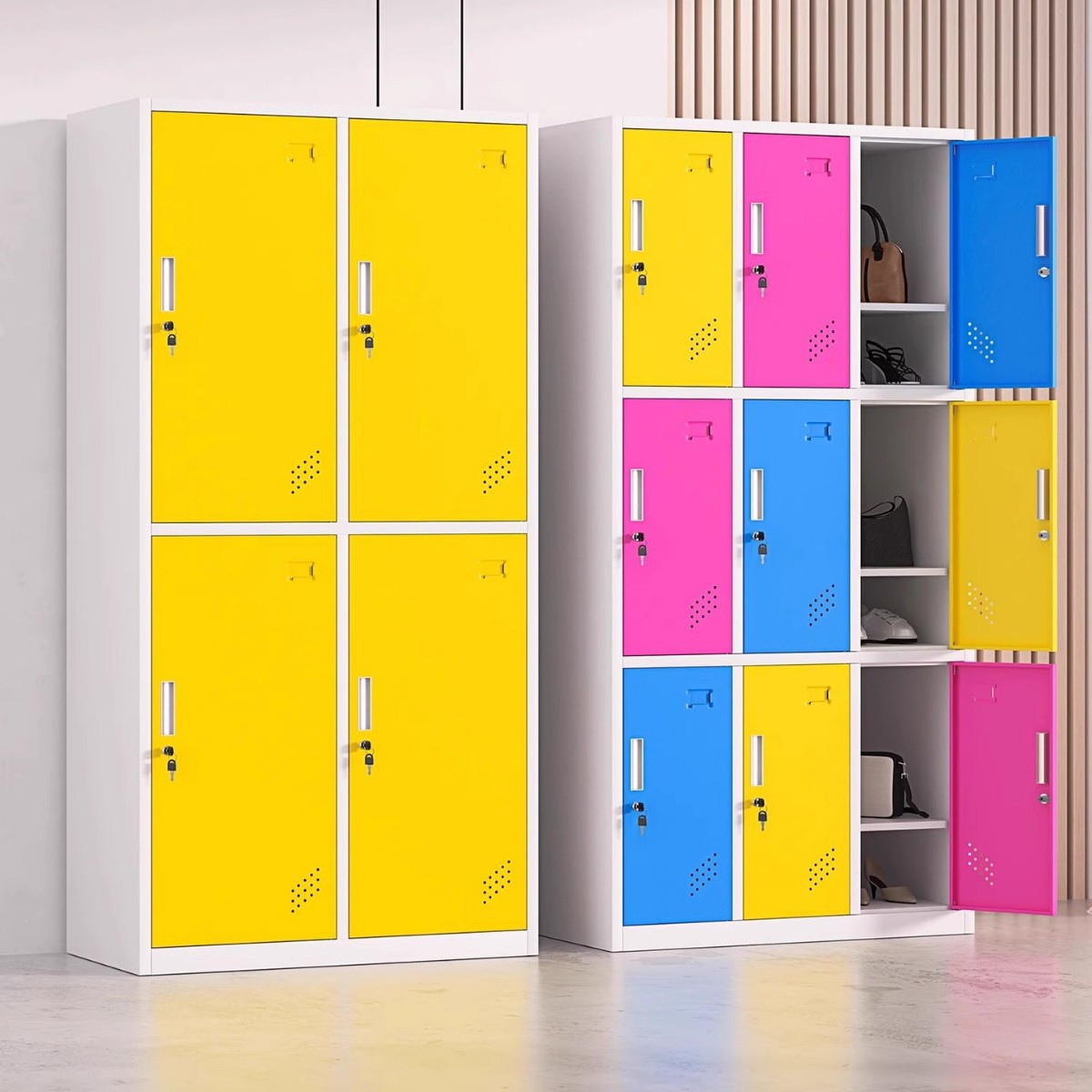 カラフルな従業員ロッカージムバッグロッカーロッカーロック付き鉄製キャビネット誘導ロックロッカー