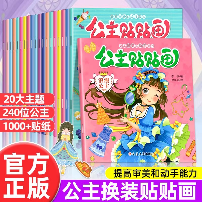 20冊のお姫様の貼り絵の美しいお姫様の着せ替え貼り紙の本幼稚園の赤ちゃん0-6歳は紙の本に集中しています。