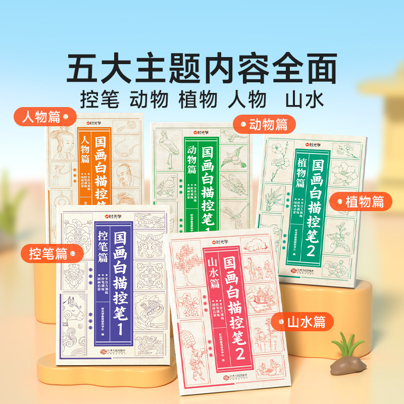 時間学の国画の白は筆のフルセットの5冊をなぞって筆の絵画の入門を制御します。