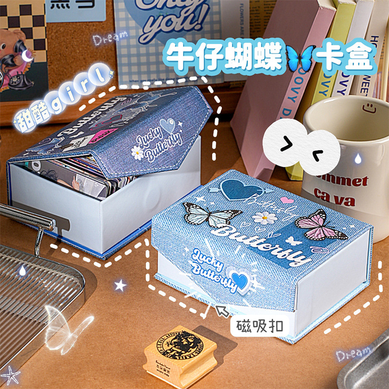 ラッキー蝶結び革PUカードケース高颜値かわいいアニメ学生集カードカード磁気吸引小箱