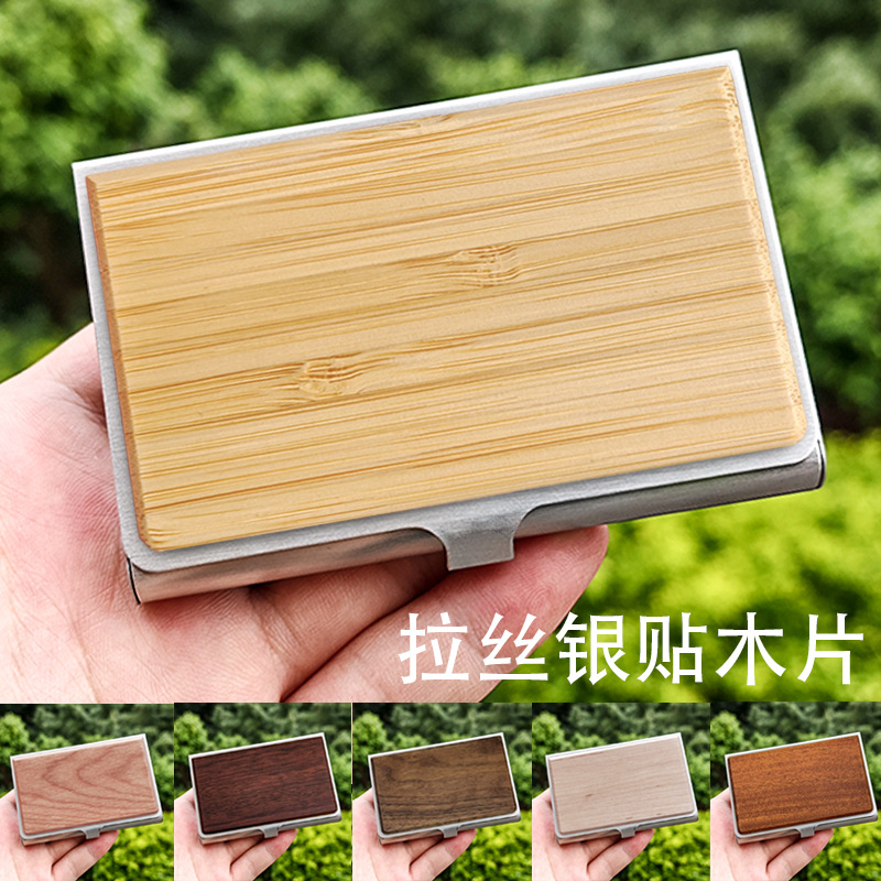厚い木製片面貼り無垢材ステンレス鋼金属メッキ名刺ボックス木目名刺ホルダーローズウッドカードホルダー