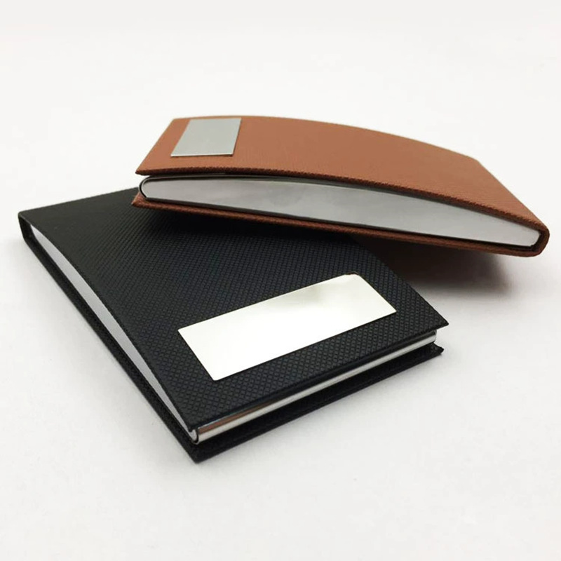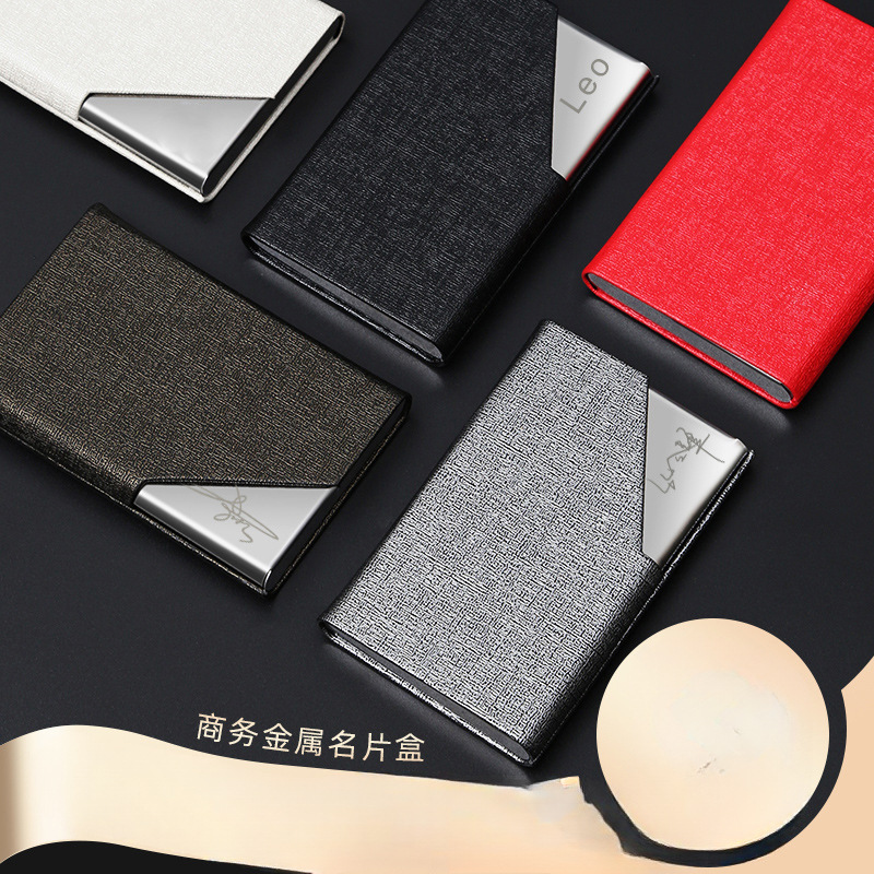 PU レザー広告レタリング名刺ボックスビジネス展示会ギフトステンレス鋼ロゴ金属名刺ホルダー