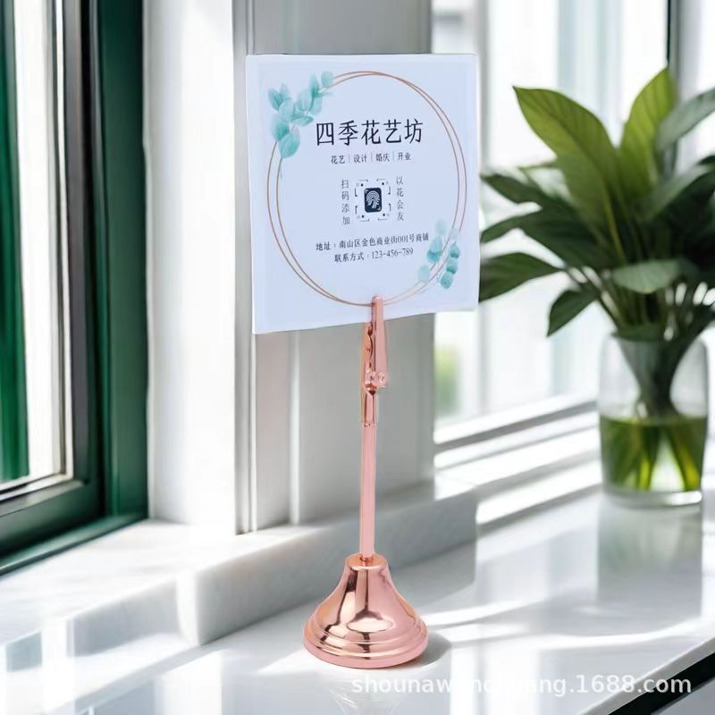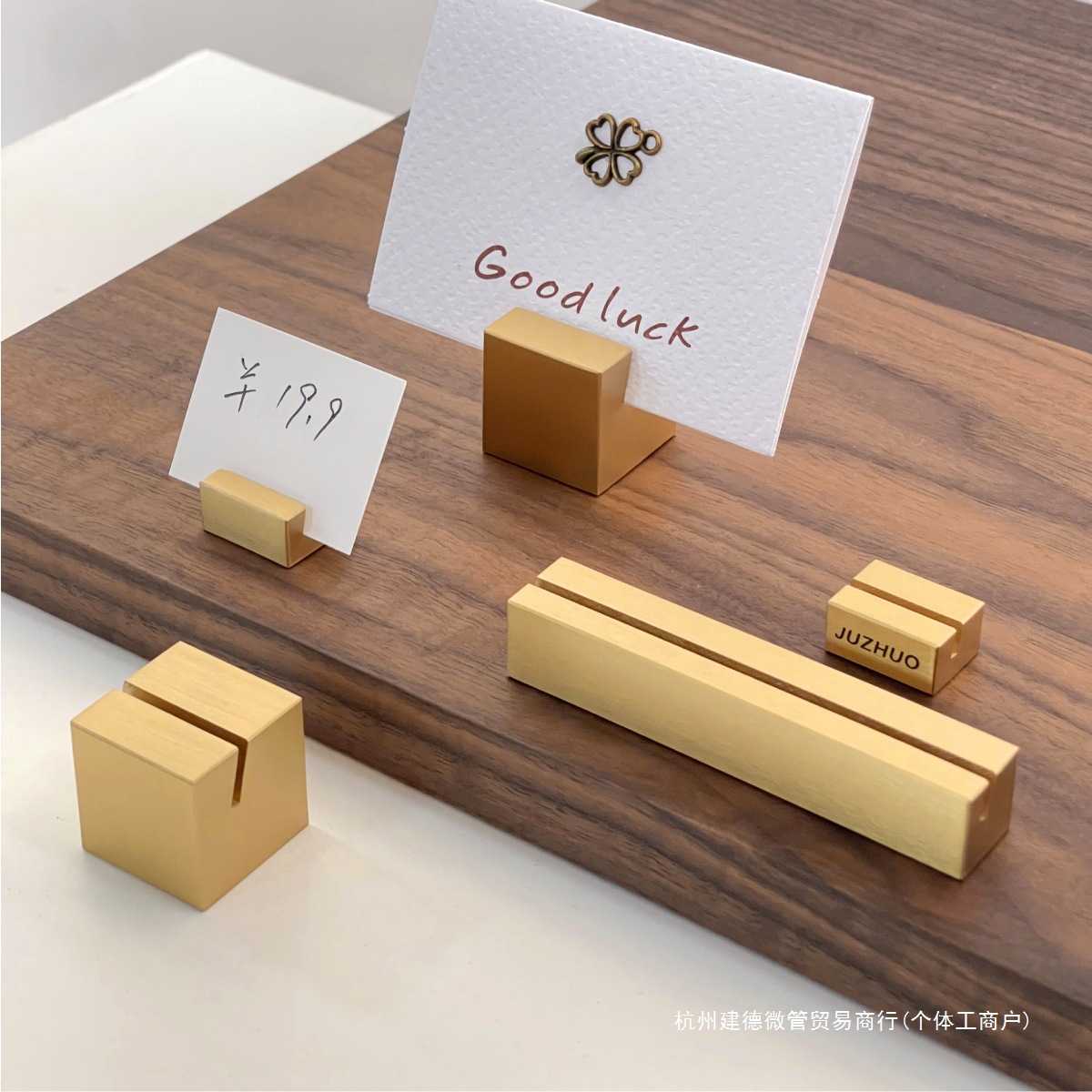 真鍮値札クリップ名刺デスクトップカードホルダーフォトクリップポストカードノートメッセージクリップベーススタンド