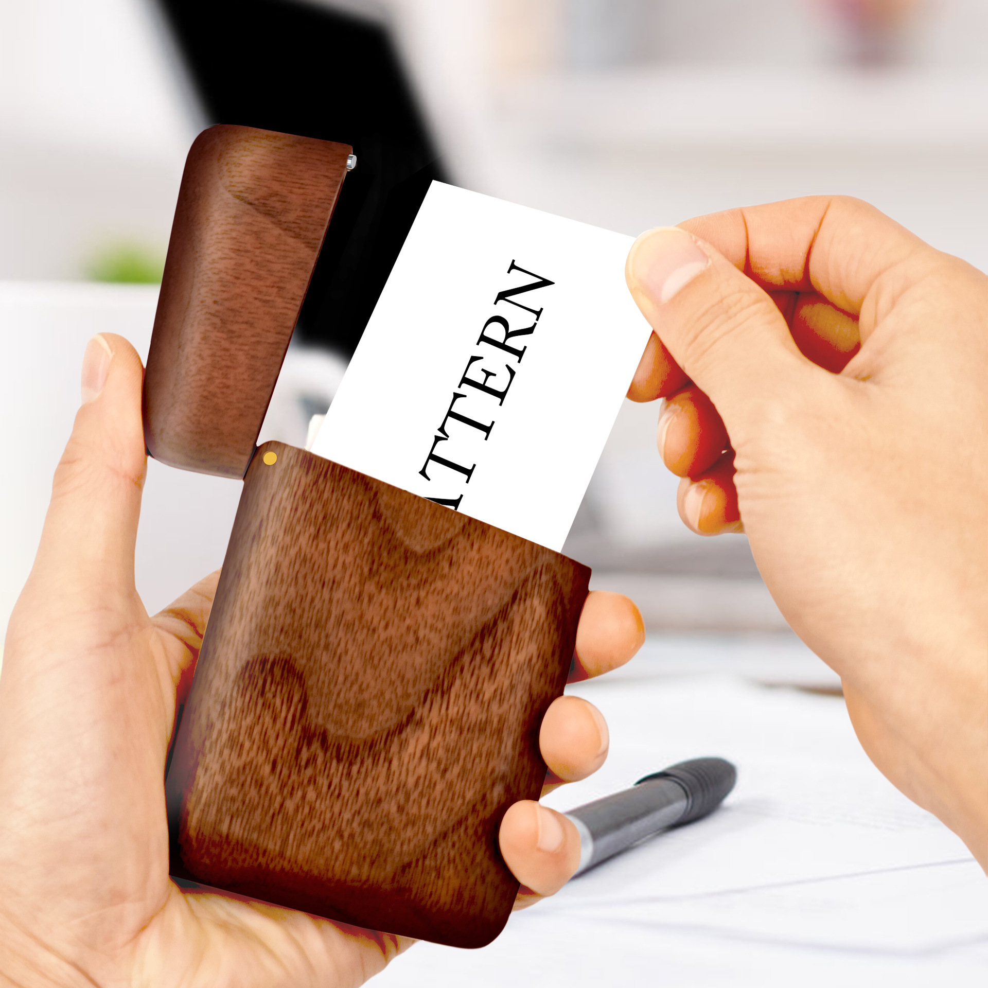 クルミ色の木製名刺収納ボックス便利なビジネスメンズ名刺ホルダーボックス磁気フリップ名刺ボックス