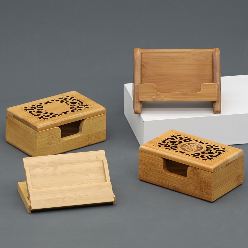 竹製名刺ボックス収納ホルダー、フロントバーディスプレイ用、縦型シンプルポータブルビジネス名刺ホルダー