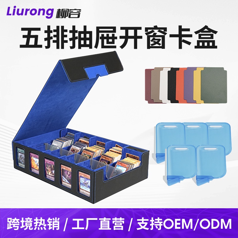 クロスボーダーホット販売 5 列カードボックス大容量 pu レザーマルチオープンウィンドウ遊戯王ポケモンゲームカードボックス