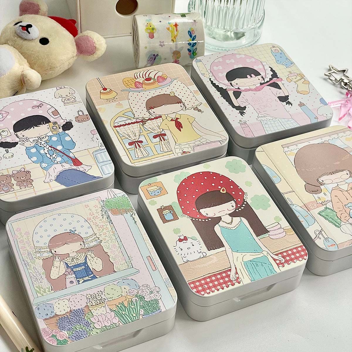 ワカオリジナルガールズファンタジーins3inchブリキフリップカバーかわいいブリキ箱小さなカード収納ステッカーキャベツブリキ箱