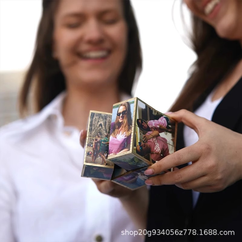 国境を越えたパーソナライズされたクリエイティブな中実木ブロック写真木製キューブ夫婦カップルの友人の結婚式記念誕生日