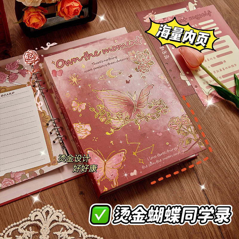 2025年 バラと蝶のクラスメート記録 小学生6年生 2024年新作 高価値ルーズリーフブック 卒業記念