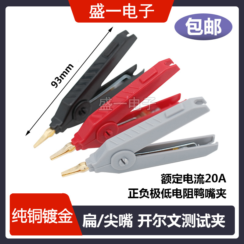 尖ったケルビンテストクリップ、金メッキの大型ワニ口クリップ、正および負のLCR抵抗フラットダックビルクリップ