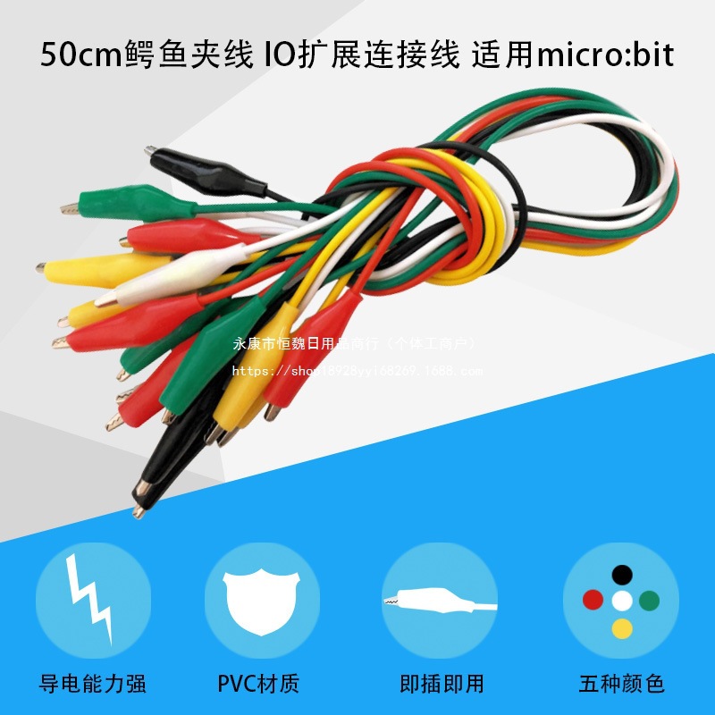 Micro bit鳄鱼夹线IO扩展测试链接线总长50CM一扎10条5种颜色