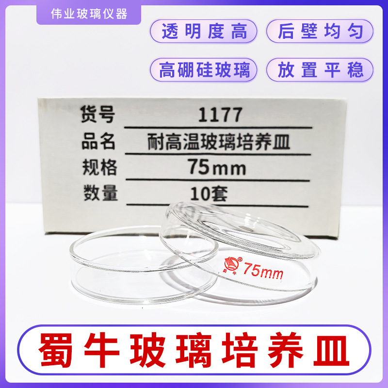 蜀牛75mm培養皿高ホウ素シリコンガラス実験細胞菌培養鉛フリーガラス耐高温平底皿