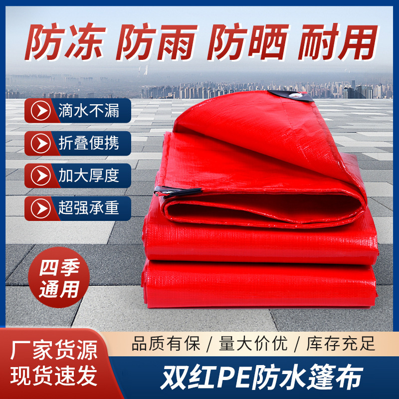 大きな赤い厚手の防雨布プラスチックの日よけ布
