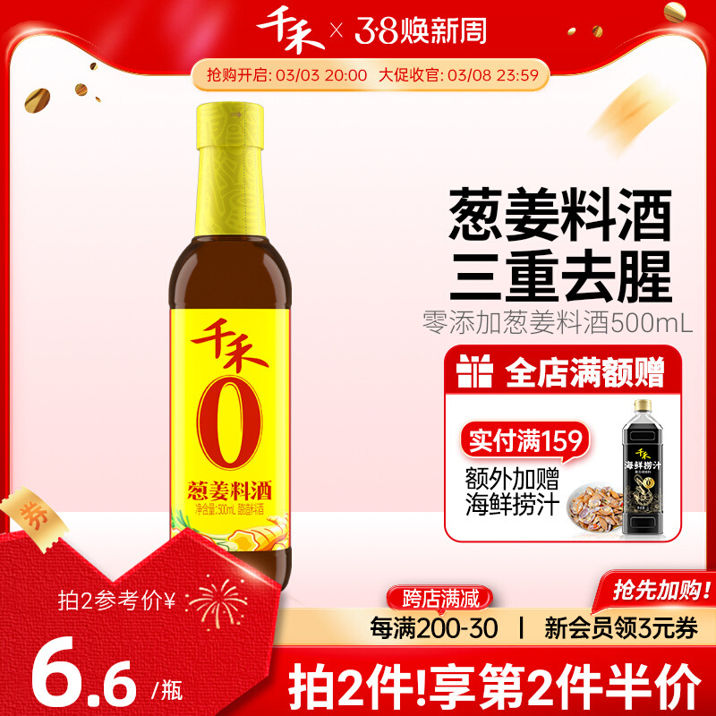 千禾料酒1.8l家庭用商用生臭い調味料酒炒め料理家庭の大瓶公式旗艦店