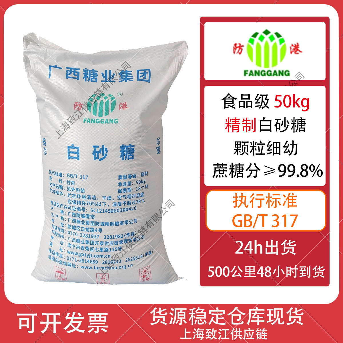 広西防城精製糖【防港】ブランド精製白砂糖50kg食品級精幼砂原料卸売り