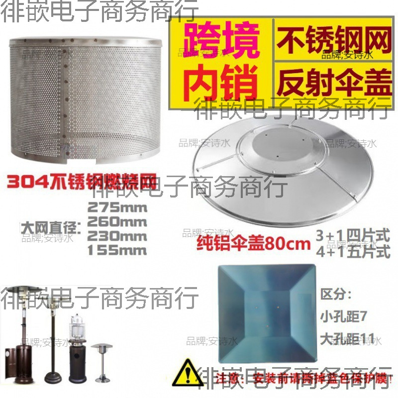 傘型アルミグリッドトップカバーガスストーブヒーター304ステンレス鋼燃焼アクセサリーターネット反射放熱ヘッドタイプ