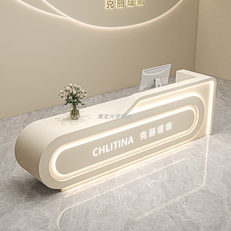 衣料品店のレジ受付デスク商業美容室ライト高級バーシンプルモダンな曲線の小さなフロントデスクカウンター